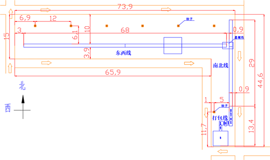 1.产线全长111.4米,高度800mm,宽度1100mm,用于跑步机组装包装生产,配套跑步机工艺生产所需静音房、插座、空调、打包机、码垛机械手、平衡吊等配套设施;